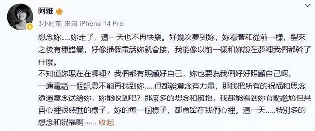 不出意外的中秋这天仍然会“照”出一些人的小心思,同时也将某些人的深情面具彻底撕下。 想念你...你走了,这一天也不再快乐。 大S生日这天好友阿雅一早发文怀念起了大S,一句话直接让人绷不住了,多好的一个人突然就没了。