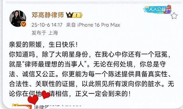 希望S妈早日好起来吧,人家汪家早就开始了新生活,只是没想到邓高静律师的一条动态再次将矛头指向汪家。 筱梅回应了 中秋这天邓律师也发文为大S送上生日祝福,只是后面的那句“泼向你的脏水”瞬间让文案变了味, 汪总一下子成了“千夫所指”,毕竟大S生前曾因为遭受网暴将他和张兰给告上了法庭。